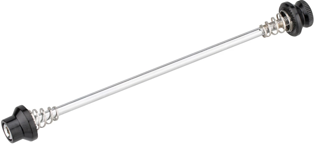 Spécifications :Largeur :roue avant : 100 mm, roue arrière : 130 mmDiamètre de l’axe :5 mmInformations techniques :Utilisation :roue avant : 9 x 100 mm, roue arrière : 10 x 130 mmType :serrage rapide, clef hexagonaleMatériau de l’axe :acier (CrMo)Matériau des écrous:aluminium (6061-T6)Longueur de l’axe :110 mm (avant), 145 mm (arrière)Contenu :1 paire de serrages rapides de moyeu 3min19sec Road